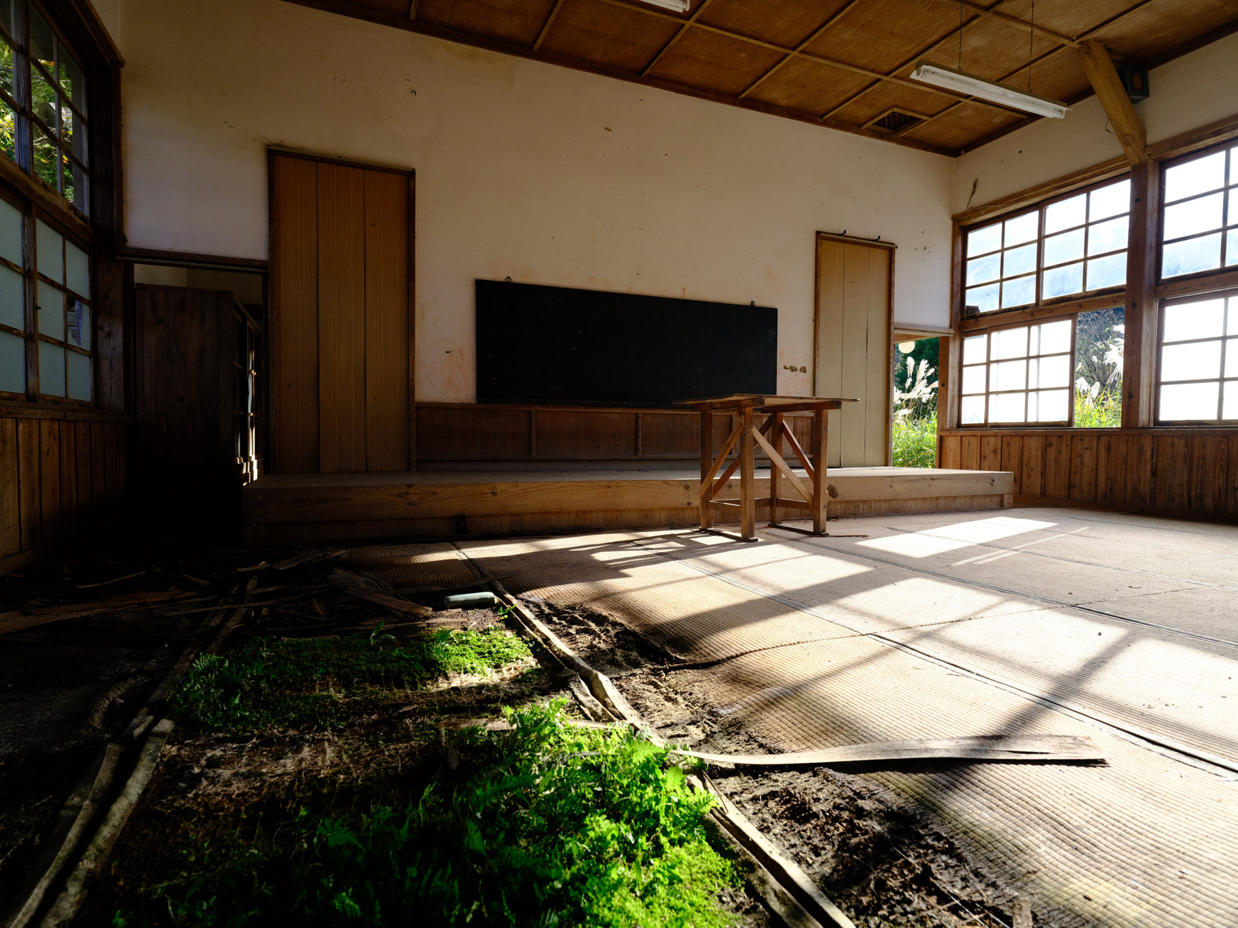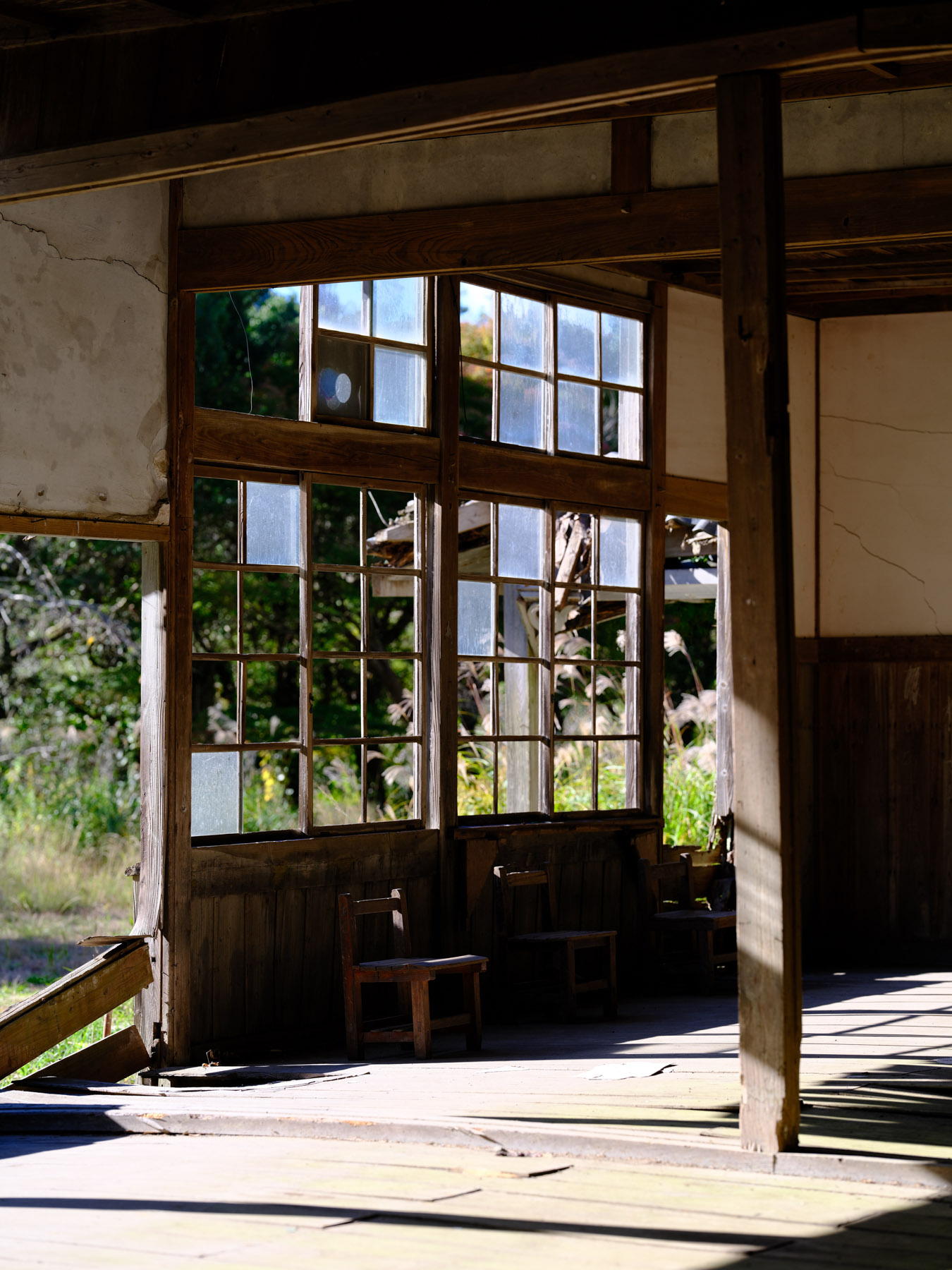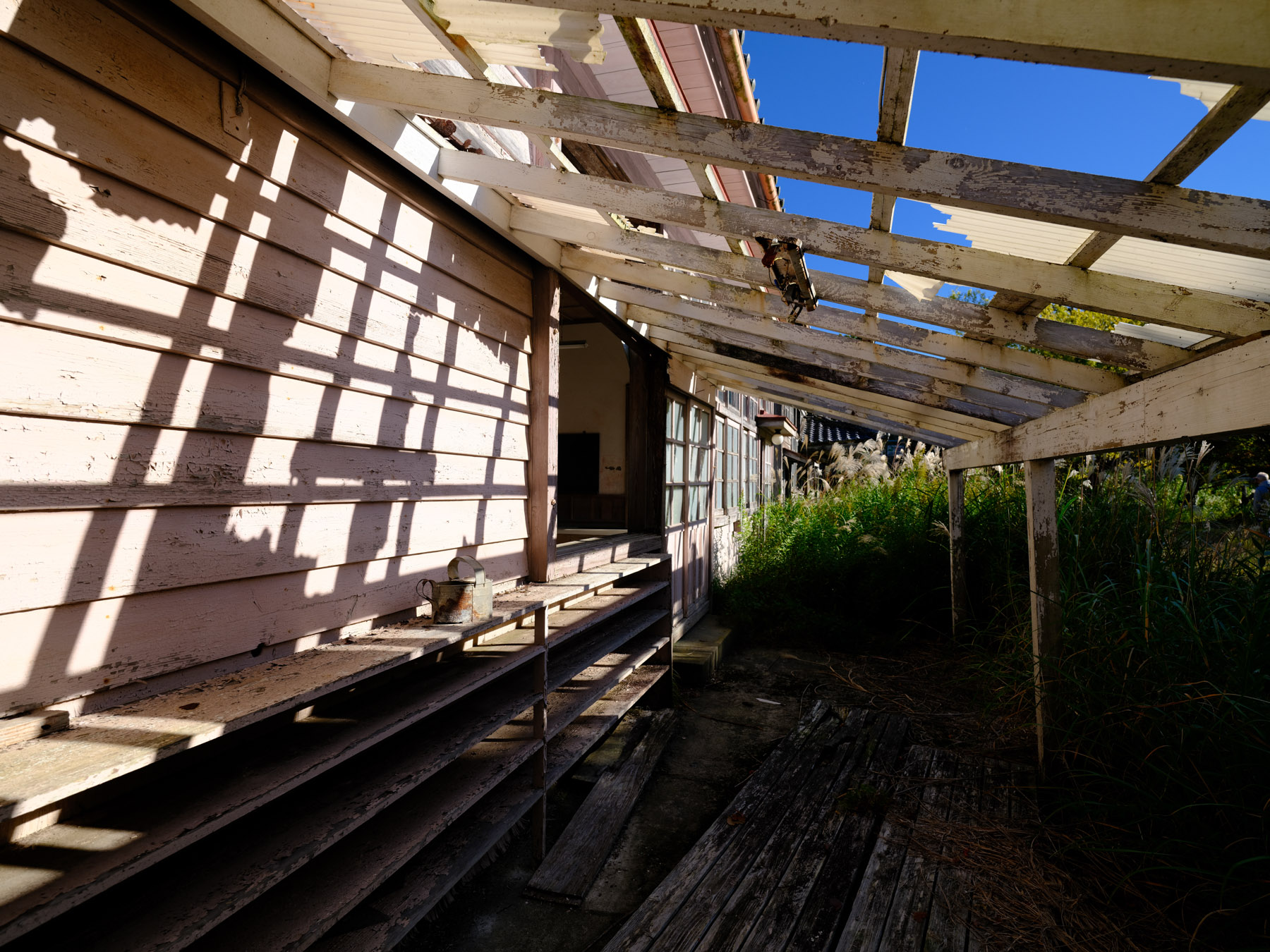 The interior of the school is equally enchanting, with peeling paint and broken windows. The corridors are lined with hooks that were once used to hang towels or shoes, and there are still blackboards in some of the classrooms. However, the back of the school is not in such good condition, with water seeping through the walls and creating a swamp-like environment. It’s a wonder how this school managed to stand the test of time for so long, and it’s a shame that it has been left to decay. Despite its dilapidated state, it is still a magical and captivating place to visit.