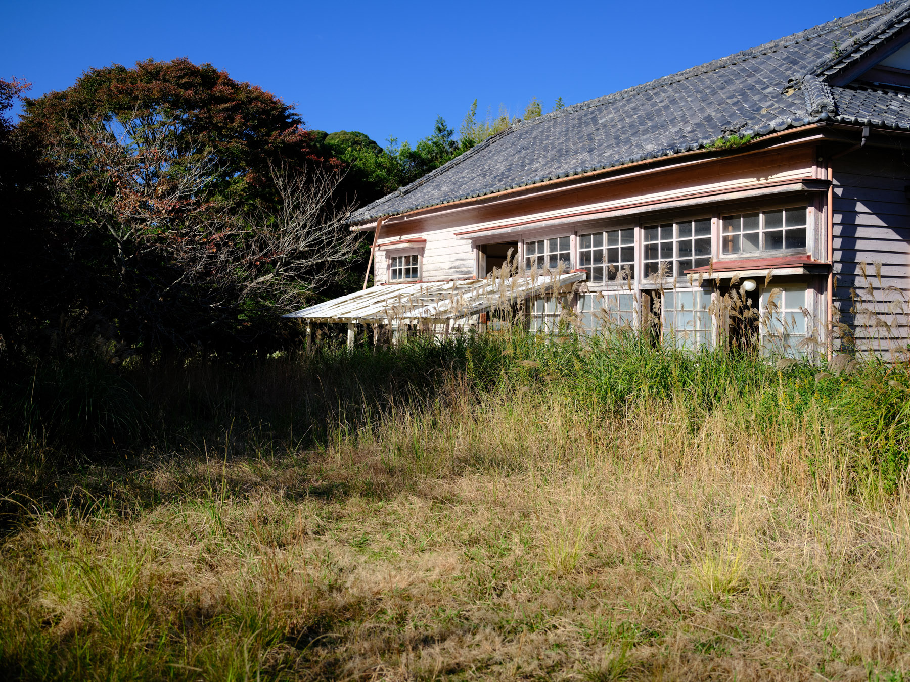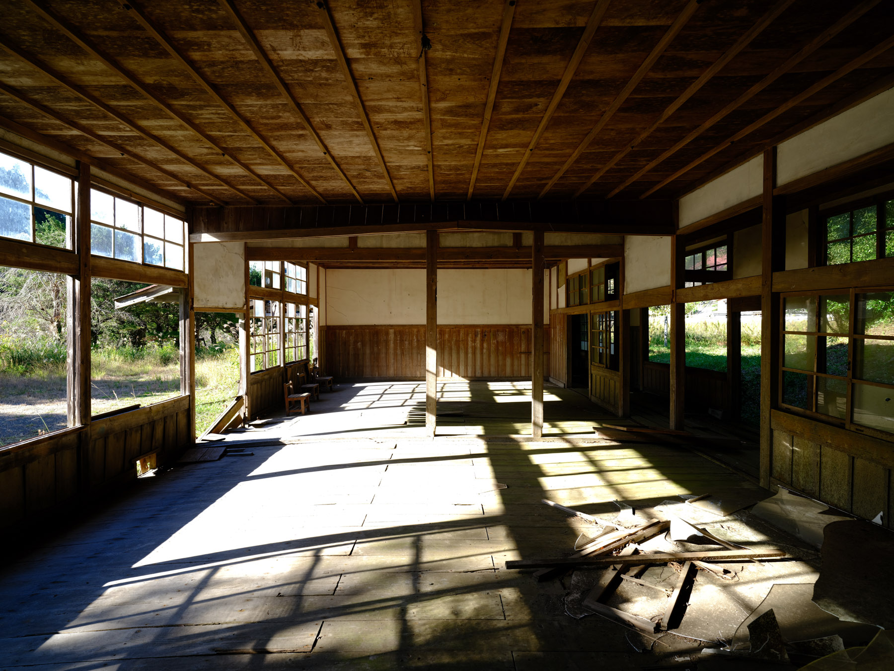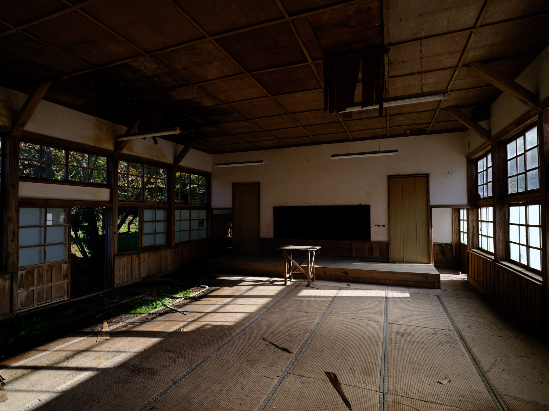 The interior of the school is equally enchanting, with peeling paint and broken windows. The corridors are lined with hooks that were once used to hang towels or shoes, and there are still blackboards in some of the classrooms. However, the back of the school is not in such good condition, with water seeping through the walls and creating a swamp-like environment. It’s a wonder how this school managed to stand the test of time for so long, and it’s a shame that it has been left to decay. Despite its dilapidated state, it is still a magical and captivating place to visit.